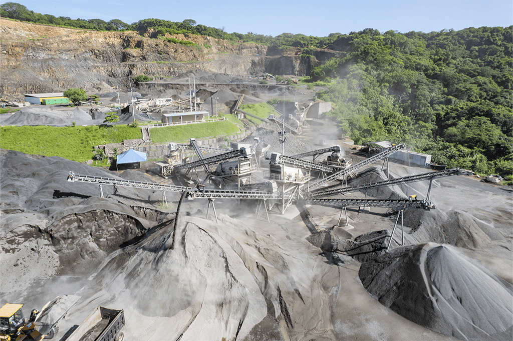 Producción de gravas, arenas, bases granulares, piedra en bruto y piedra cuarta para la industria de la construcción en general, así como también agregados para elaboración de mezcla asfáltica, concreto hidráulico y prefabricados.